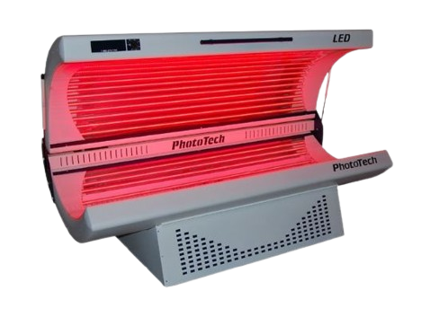 The Rejuvasun was made be ETS Tans of Indiana from about 2006 to 2010 and is no longer in production but you can find them for about $3k to $6k on the secondary market.  The Rejuvasun is the only “hybrid” tanning bed and red light therapy bed in one ever built to our knowledge with FDA approval.  The long tubes are UV tanning bulbs and the facial area contains red LED lights emitting light at 632nm.  This is the ONLY red light treatment bed certified in states which require class II medical devices like Ohio, Iowa, North Carolina, Florida, Texas and California.